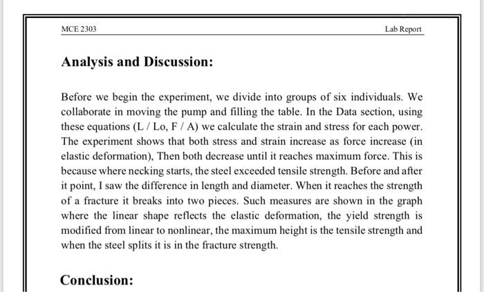 Solved Mce 2301 Lab Report Tensile Test Introduction One Of Chegg Com